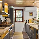 I servizi di self-catering di questa villa includono un angolo cottura attrezzato, un bollitore elettrico, un frigo e un forno.